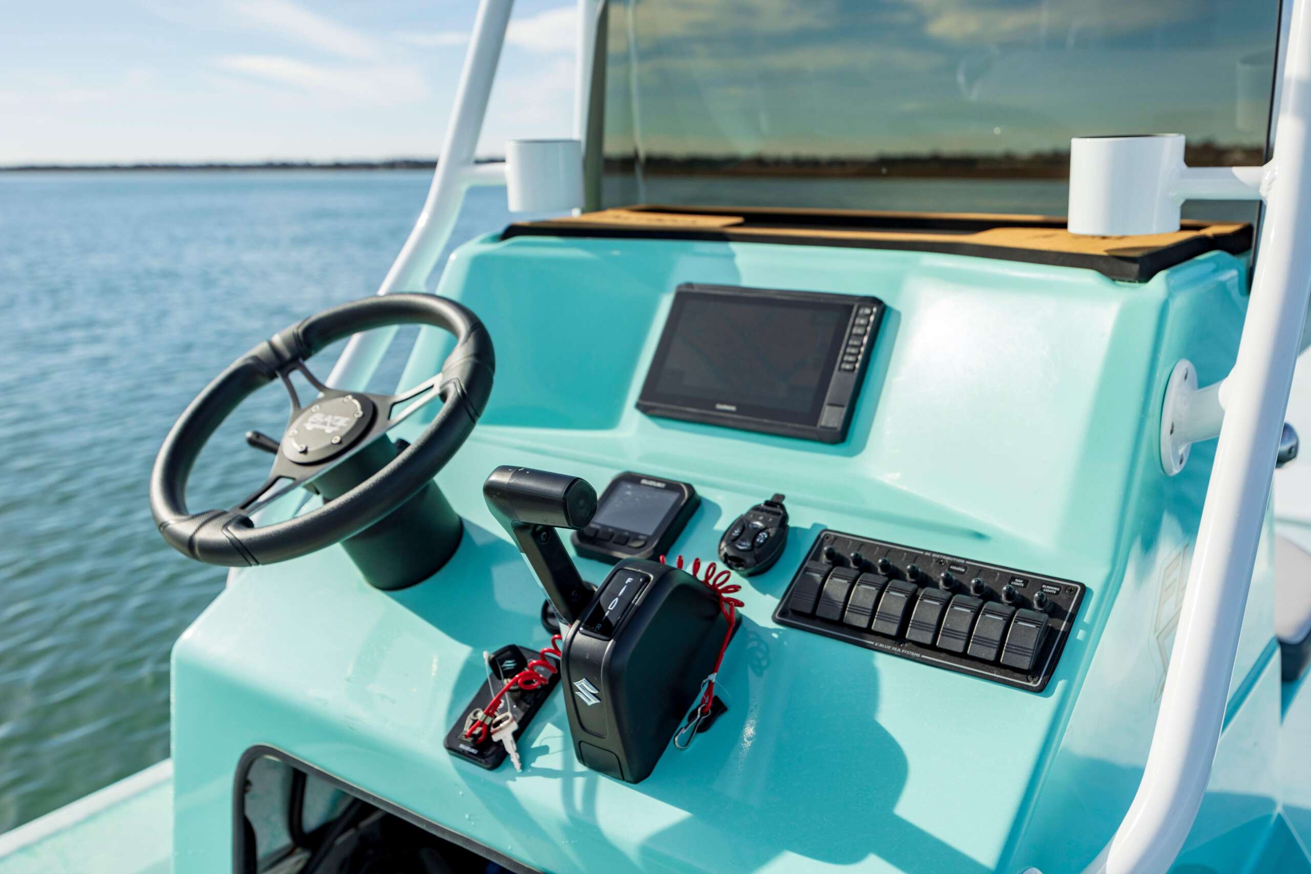 - Large console Fiberglassed to deck