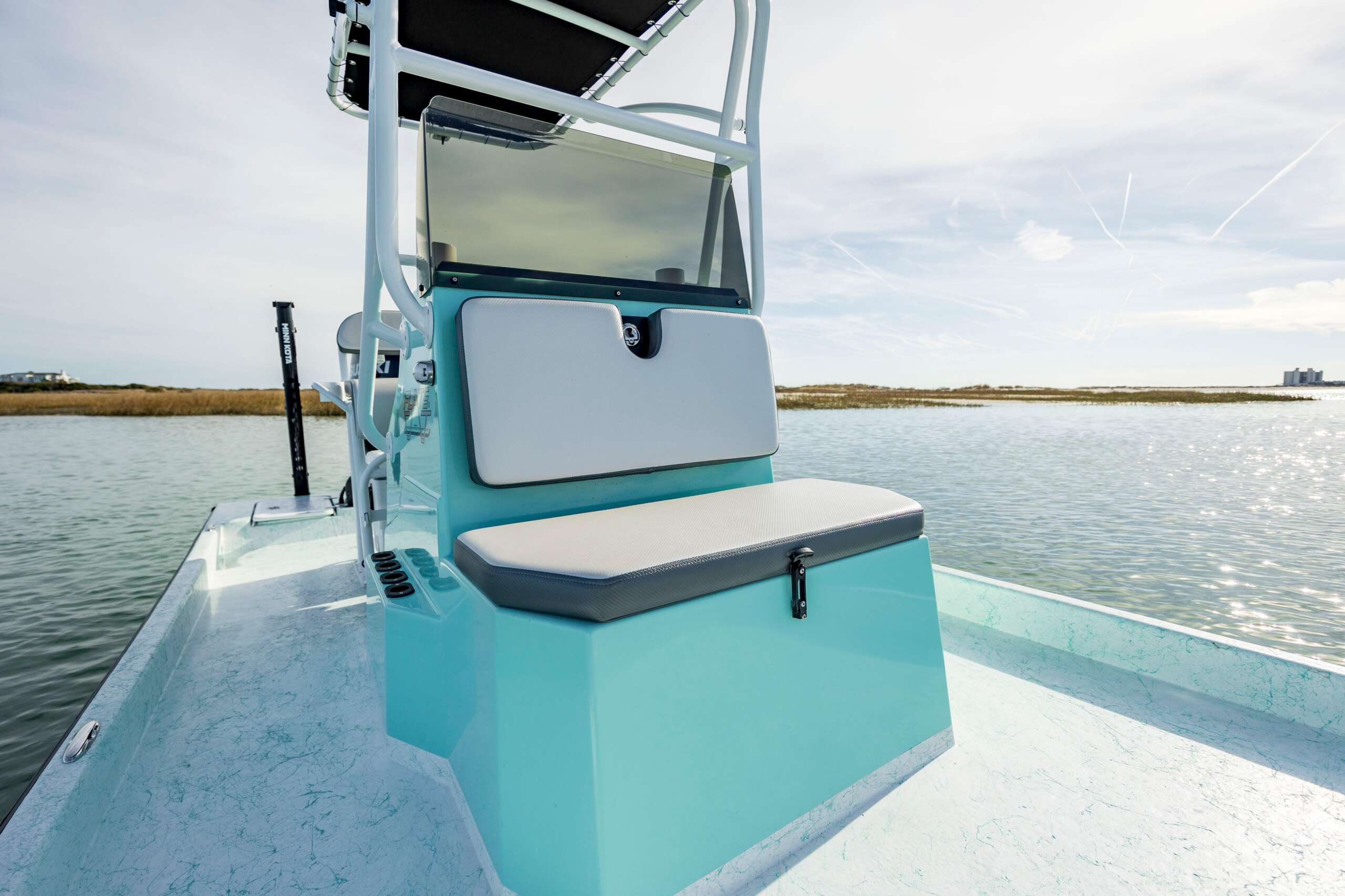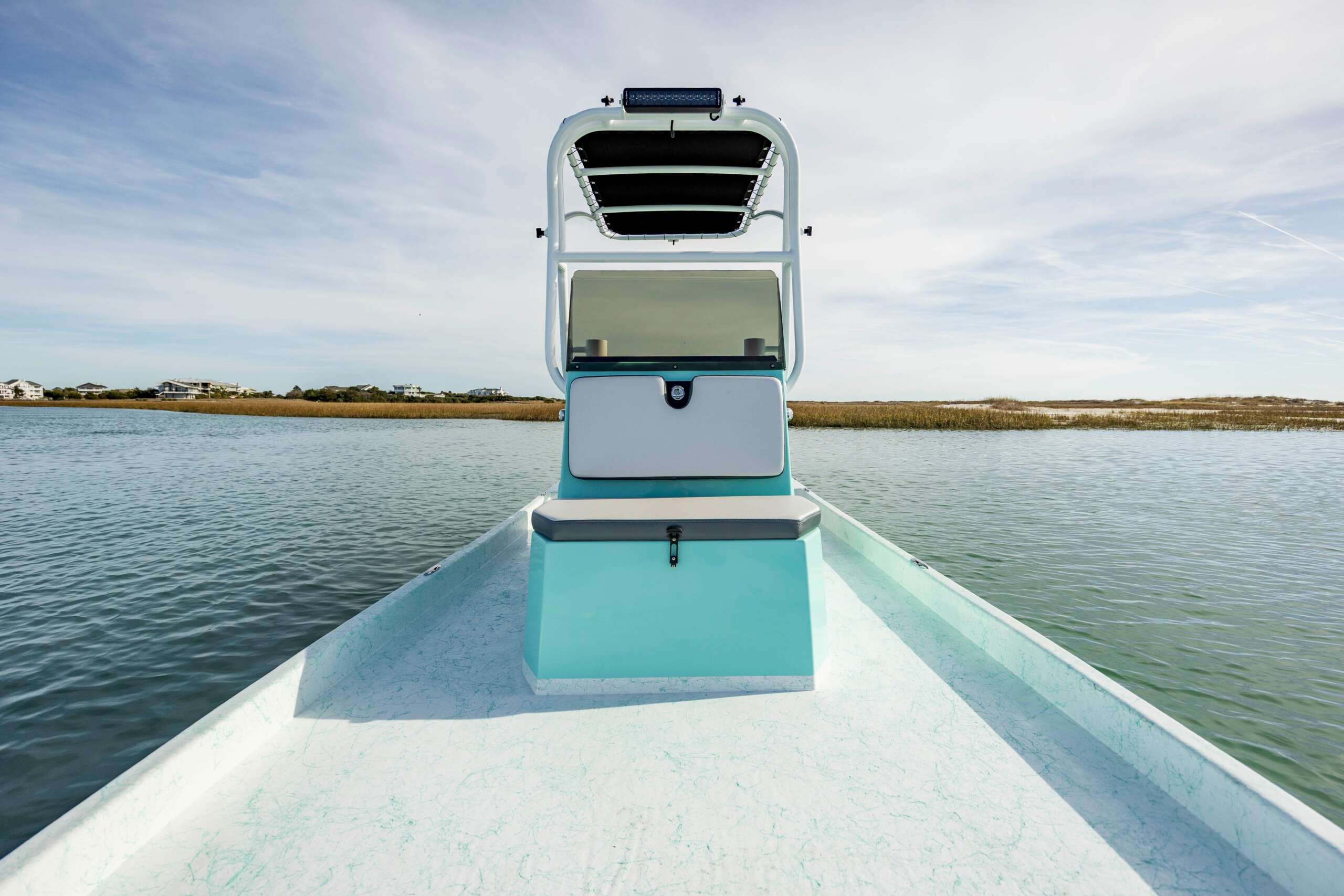 The 21 Flats Cat offers a much larger front casting platform, much more space around the boat and more storage. With similar shallow water capabilities as the smaller 17 and 19, you can still get into those extreme shallows but the 21 will handle big choppy water better with a smoother ride. From super shallow to choppy bays and rough waters, the 21 foot Flats Cat can handle it all.